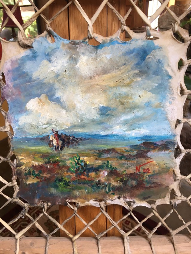 (HJN Landscape, Oil on rawhide)