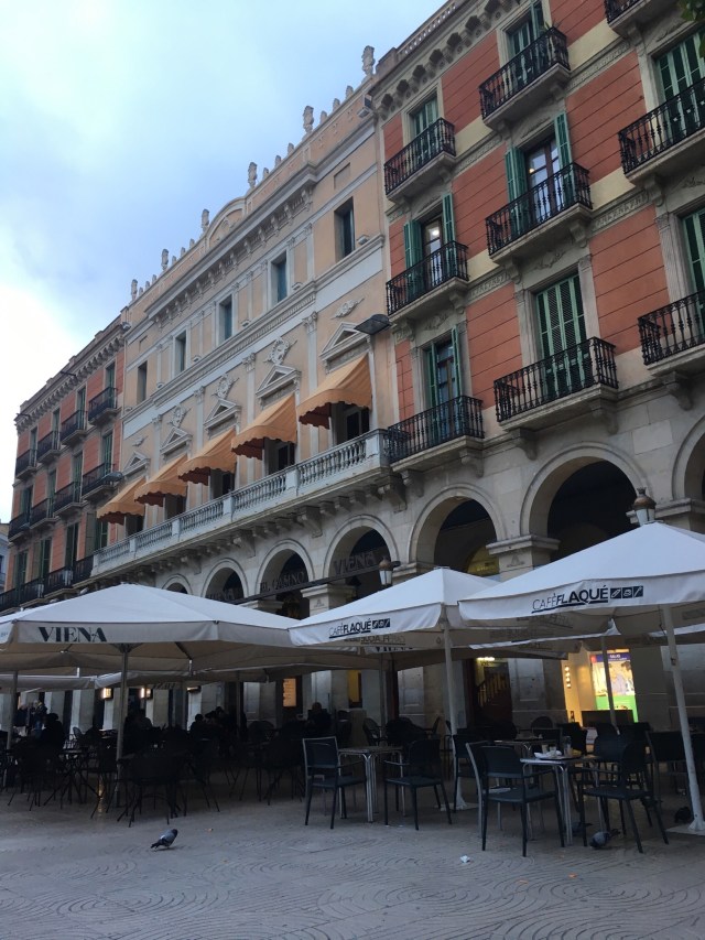 Enjoyed a leisurely outdoor chamomile tea with my granddaughter at the Viena. The windows with awnings formerly housed a fine restaurant patronized by prosperous Catalan burghers and their families. The Fortuny Theater is next door, a venue for opera, ballet and the like. JMN.