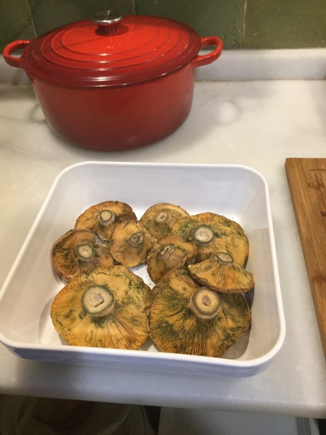 Mushroom gathering is a lively Catalan tradition. Eduard collects a batch most days and they are sauteed in oil and garlic for meals. He knows five species that are consumed, and those to avoid. Today he was excited to find a patch of what are called “rubellons” growing in the “mas.” They’re the kind pictured above. He usually gets them in the nearby mountains. The grandfather who built the mas made his fortune in hazelnuts. This nut is much prized here, and Catalans believe the locally grown ones are the world’s best. I haven’t tasted all the world’s hazelnuts, but I’m happy to concede the point on faith.