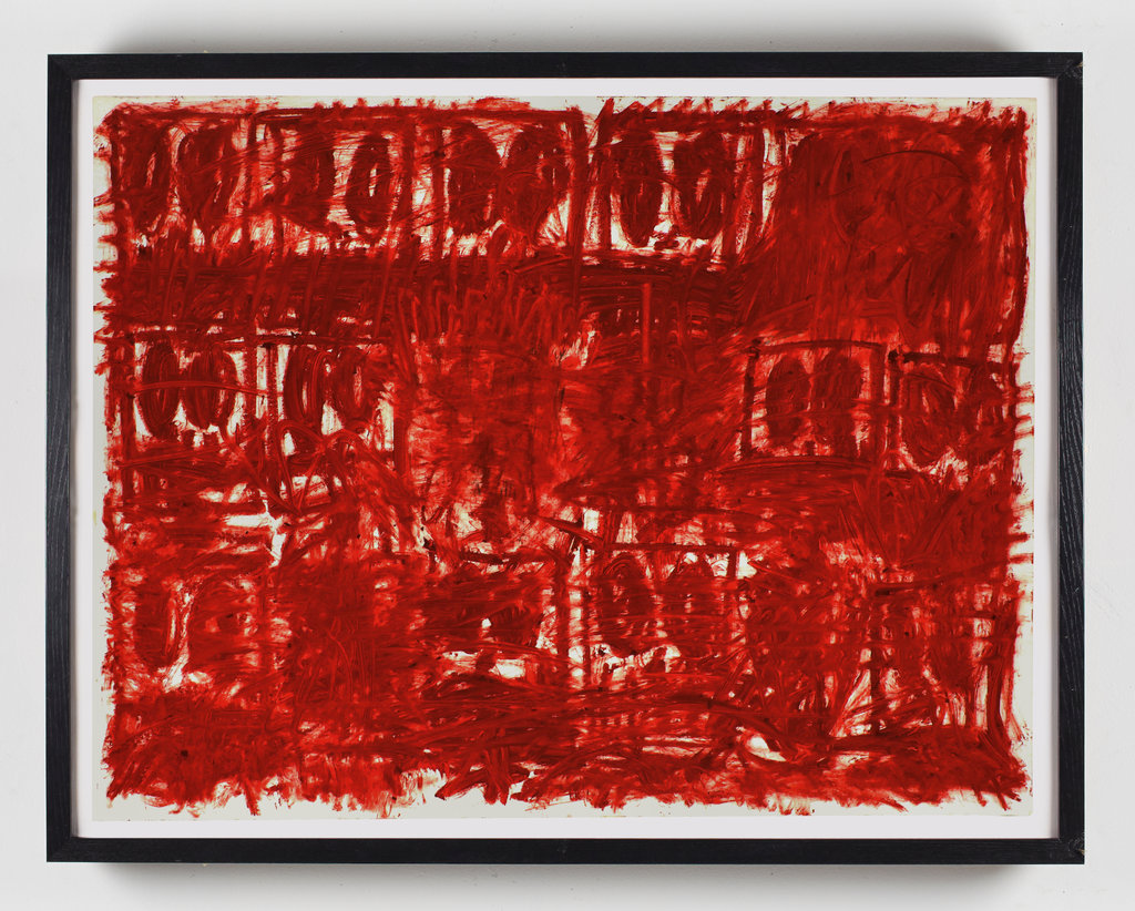 I’ve actually been busy doing drawings similar to one from 2018 called “Anxiety Drawing.” They were black, and now they are red. (Rashid Johnson)