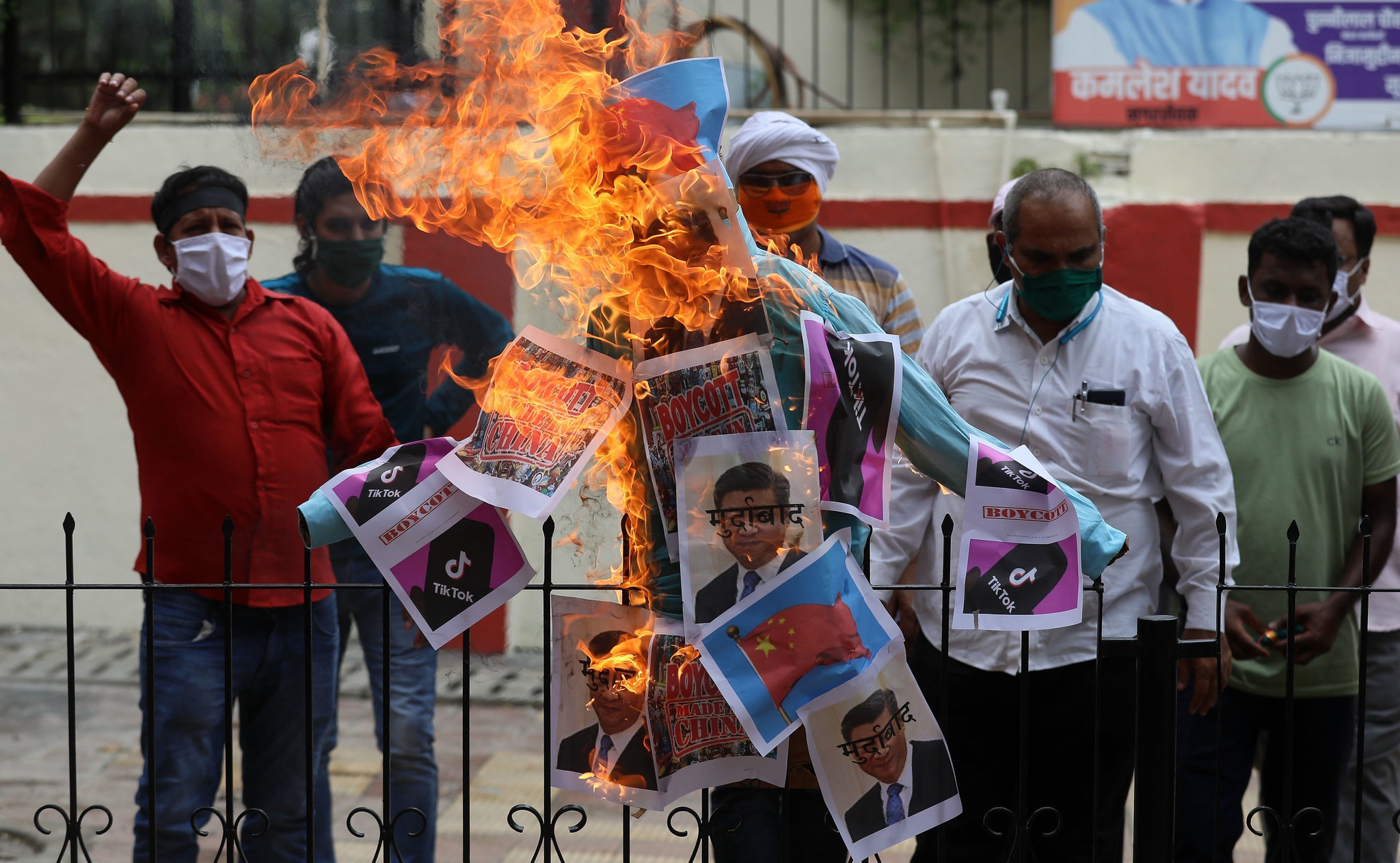 Members of India’s ruling Hindu nationalist Bharatiya Janata Party protesting against China in Mumbai on Friday. Credit… Divyakant Solanki/EPA, via Shutterstock.