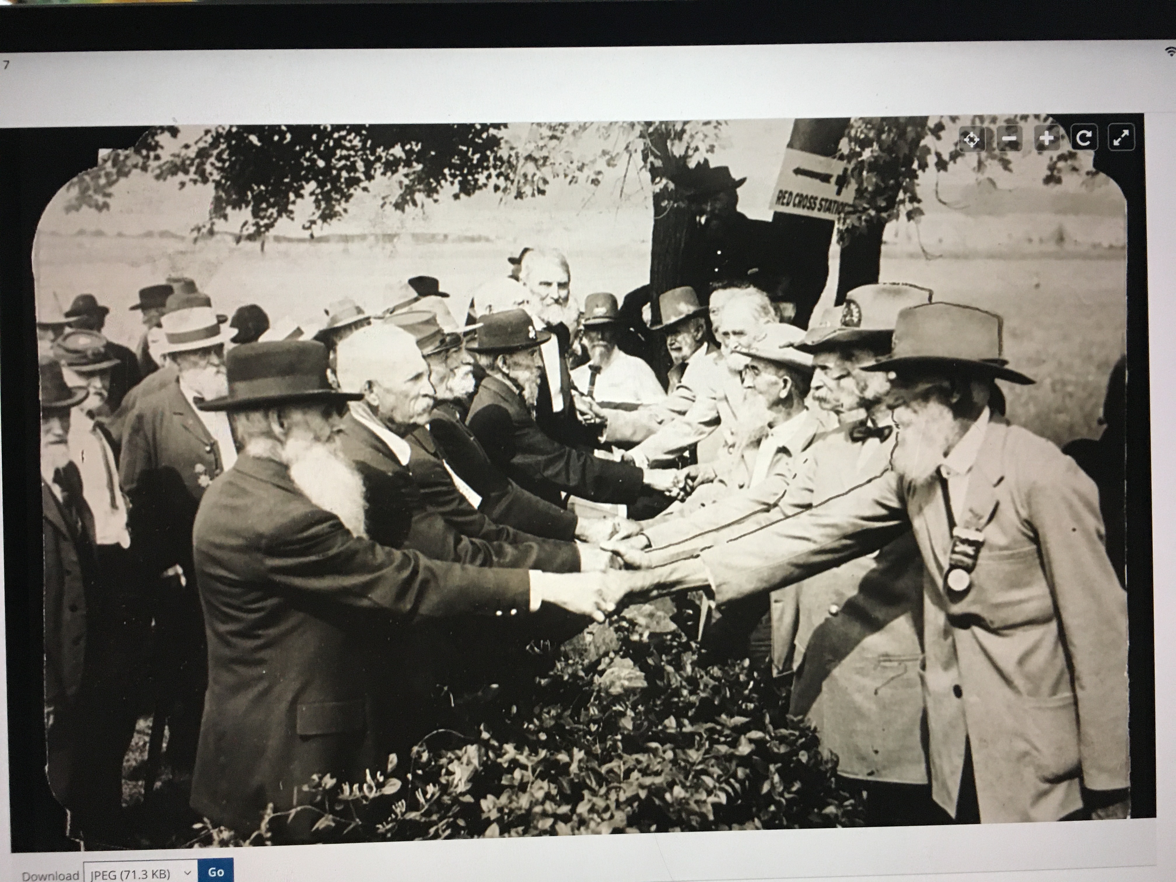 This photo captures a moment when a ritual handshake marked a pause in our Civil War.