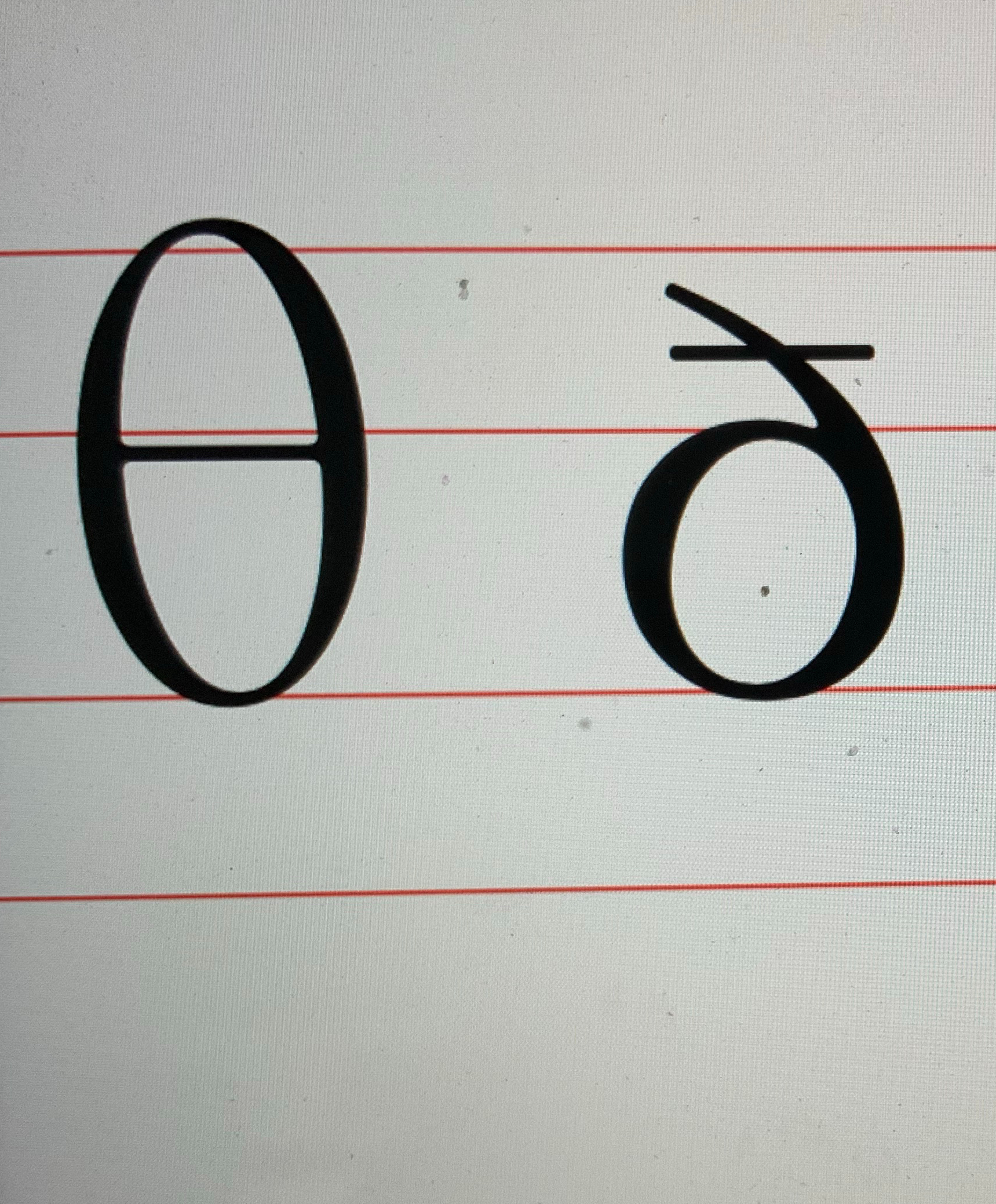 The phonetic symbol for the unvoiced variant is the Greek letter “theta”; the symbol for the voiced variant is the Old English and Icelandic letter “eth.”