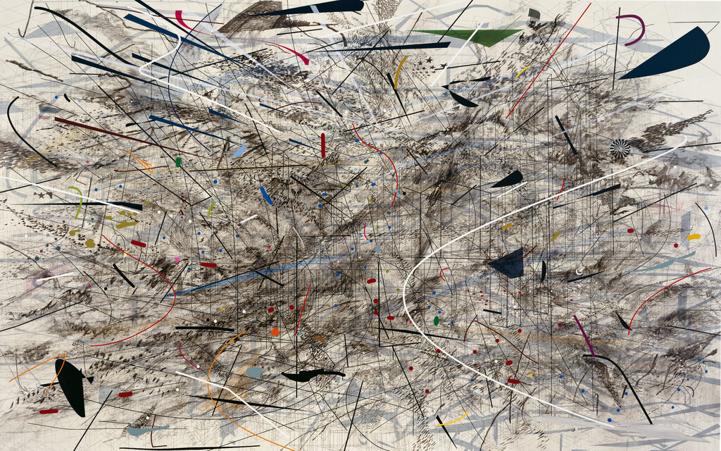 Jason Farrago lavishes a container shipload of exegetical rumination on Julie Mehretu’s paintings.