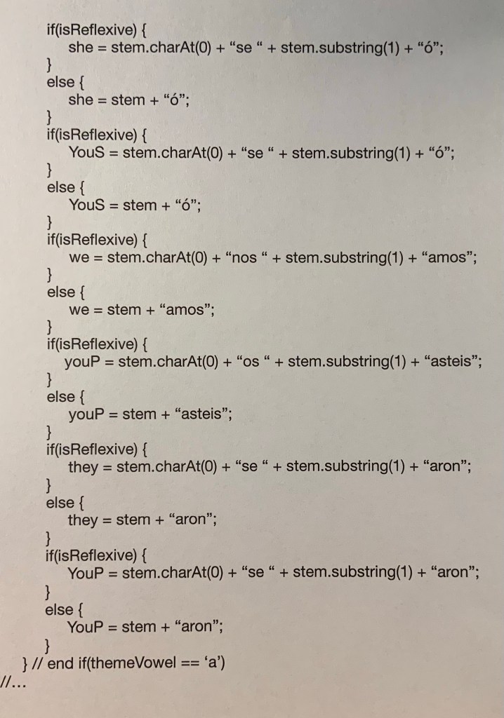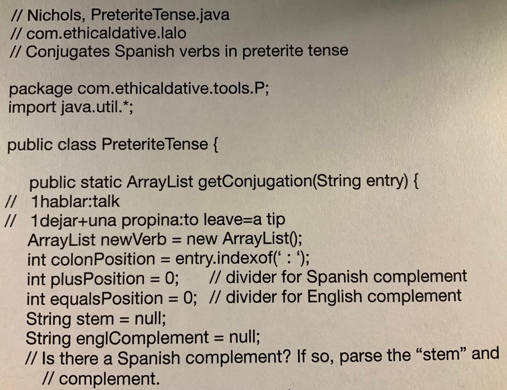 My Java code involved a lot of string handling because I was modeling natural language to create interactive learning tools for high school Spanish students. Before that I had worked on other projects involving English, Spanish and Arabic.