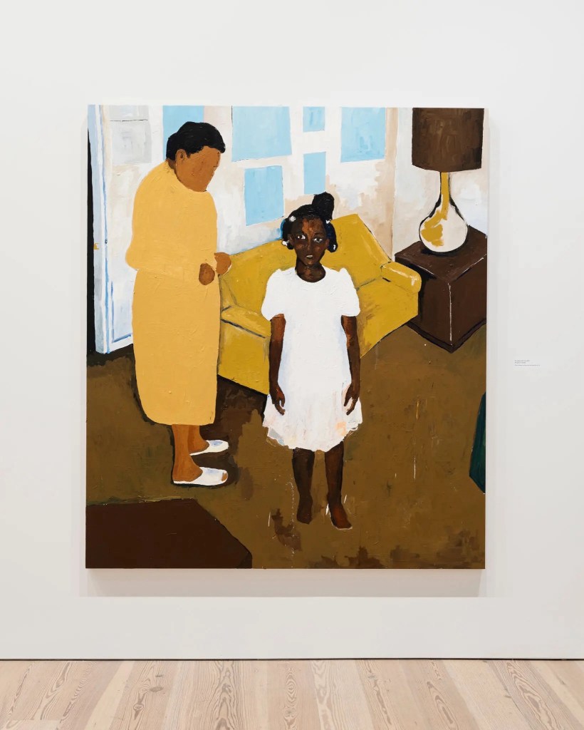 … Taylor’s paint handling… tends to be startlingly tough and direct. It proceeds in slabs of untempered color and skirmishes of brushwork, sidestepping traditional notions of finish and beauty… Taylor’s paint also makes his figures very present. As do their staring, often dissimilar eyes.