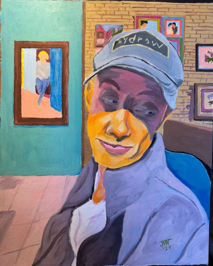 “Askance,” oil on watercolor paper, 16×22 in. (JMN 2025).
