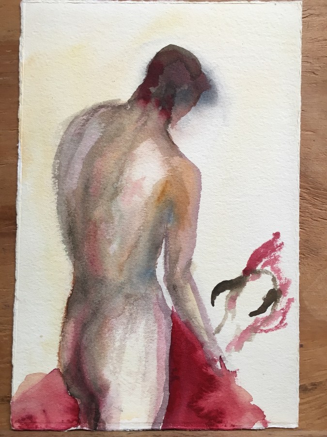 HJN0010W Naked Bull Fighter, Watercolor. 7-1/2 x 11-1/4 in. $175. Copyright 2018 James Mansfield Nichols. All rights reserved.