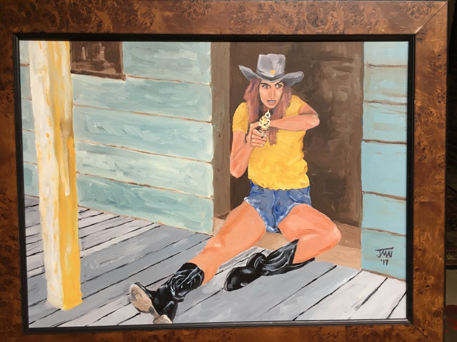 Woman With Revolver, JMN, 2017. Oil on canvas. 18 x 24 in. Copyright 2018 James Mansfield Nichols. All rights reserved.