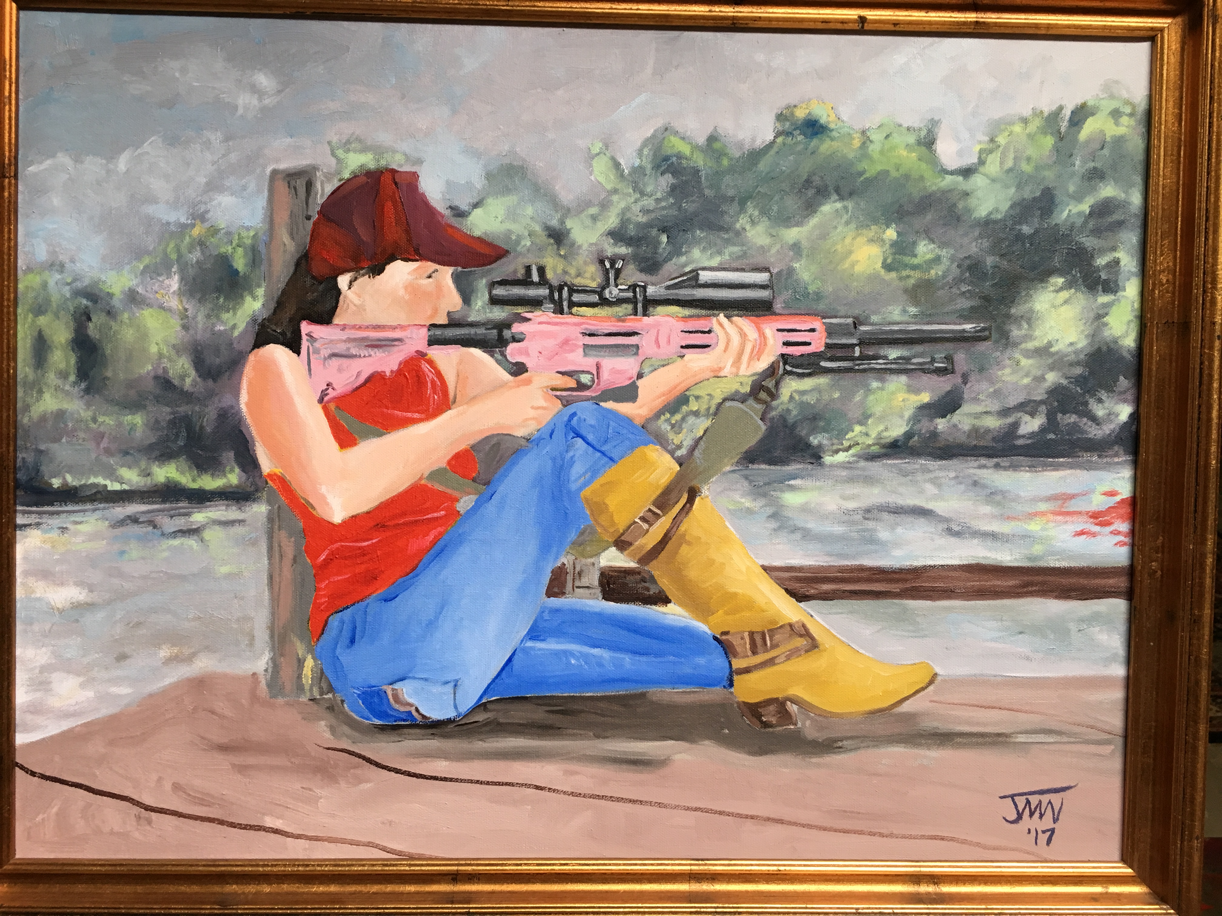 Woman With Rifle, JMN, 2017. Oil on canvas. 18 x 24 in. Copyright 2018 James Mansfield Nichols. All rights reserved.
