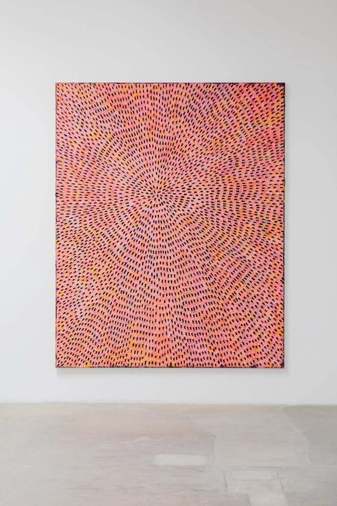 “Till Sunbeams Find You (Painted White Sand, Orange, Pink, Hot Pink, Yellow, Turquoise, Lavender and Purple, Black Fill),” 2021-22. Credit… Alex Welsh for The New York Times.