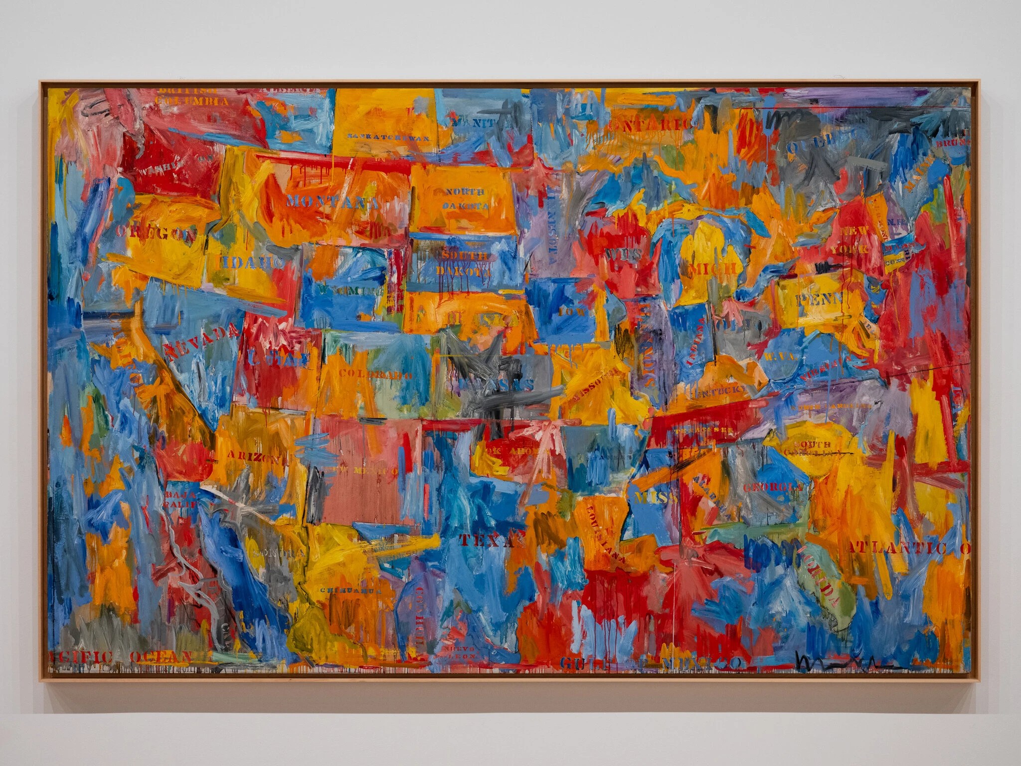 Brobdingnagian ocular hubbub. Colossus of hue and scream. Tympanic boom. These phrases leapt to mind — of course they did! — as I eyed Sarah Cain’s work. Confession though: Cain owns me for rejecting the term “murals” in favor of “wall paintings.” Call an abattoir a slaughter house is the principle I chase.